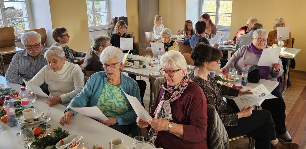 Wenn bei einem gemütlichen Zusammensein ein Mitglied zu diesem Lied eine wunderschöne persönliche Erinnerung aus seiner Kindheit erzählt, berührt dies sehr. Das erlebten die Besucherinnen und Besucher an der Adventsfeier vom 18. November 2025 beim Singen von stimmungsvollen und vorweihnächtlichen Liedern. Priska Rutishauser, unsere Audioagogin, hatte alle Lieder für die Anwesenden kopiert und so erklang der Ad-hoc Pro-Audito-Chor zur Gitarrenbegleitung von Priska mit viel Freude. Dazu beigetragen hat sicher auch der weihnächtlich geschmückte Raum des Siehbachsaals in Zug. Erinnern war angesagt: die einen erinnerten sich bei der Foto-Präsentation von Philipp Rogenmoser gerne an die hundertste Mitgliederversammlung und dem gelungenen Ausflug aufs Hochstuckli, andere genossen die tollen Bilder mit all den bekannten Gesichtern. Das Wichtigste war aber bestimmt das Zusammensein, die Gespräche und die Freude miteinander einen schönen Nachmittag bei Kaffee und Kuchen zu verbringen. So konnte man sich gut auf die Advents- und Weihnachtszeit einstimmen und – wie die Fotos der beiden Mädchen mit ihrem Mami zeigen, zusammen auch fröhlich sein.