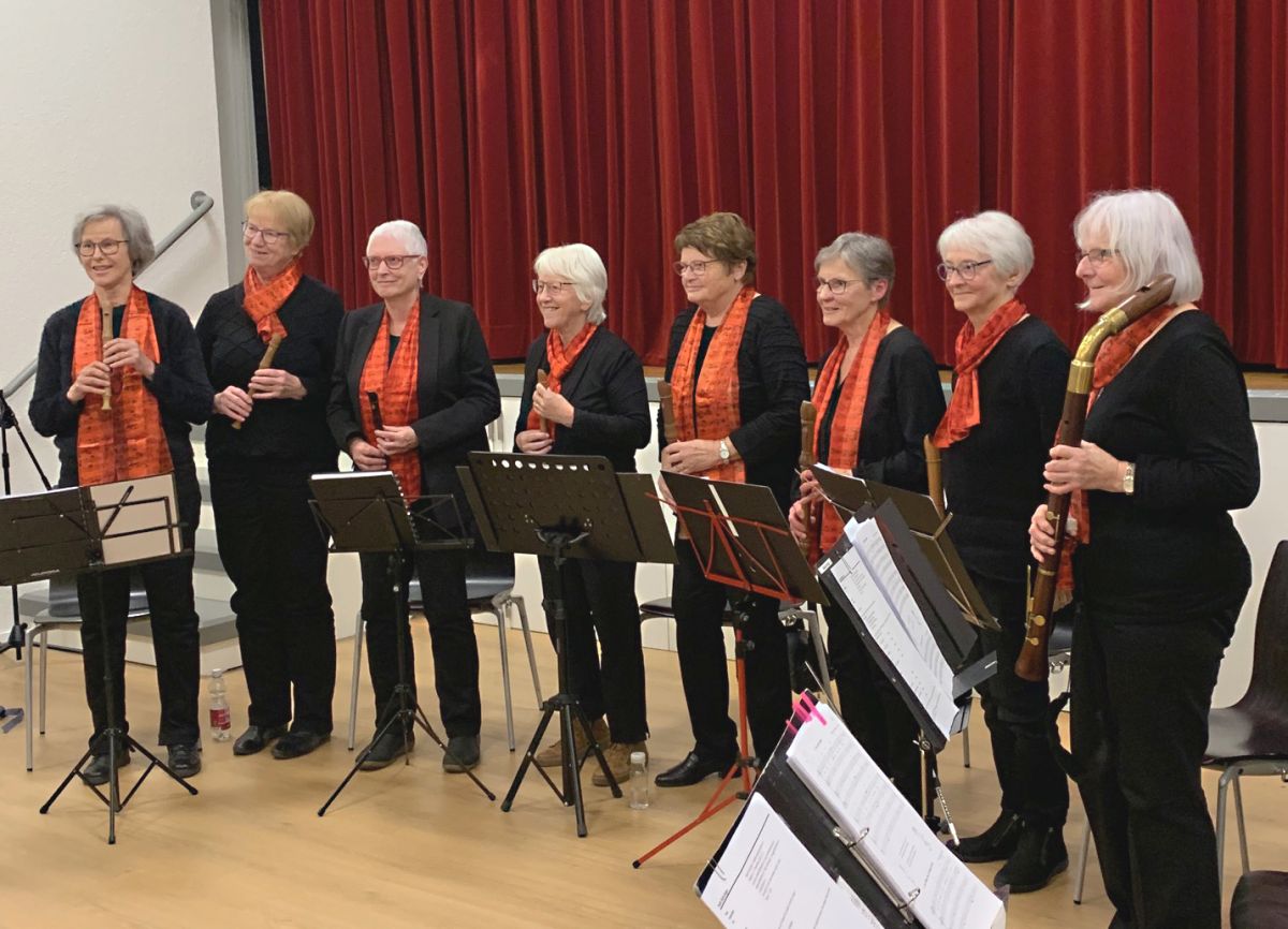 Weihnächtlich bezaubern liessen sich viele Mitglieder von Pro Audito Zug, als sie Ende November die Adventsfeier im Pfarreiheim Baar besuchen. Es war die schlicht dekorierte Tanne mit einer Sternenkette, die Tannenäste auf den Tischen, der Geschmack der Mandarinen, das Licht der Kerzen, die eine feierliche Stimmung verströmten. Mitglieder der Blockflötengruppe von Pro Senectute Zug unter der Leitung von Brigitte Würgler spielten zum Auftakt bekannte Weihnachtslieder, einige Anwesende summten dabei mit. Die besinnliche Weihnachtsgeschichte, vorgetragen von Dorli Baumgartner, brachte uns fast bis nach Nazareth. Die Flötenspielerinnen rundeten den besinnlichen Teil nochmals mit schönen Melodien ab. Auf Wunsch von Teilnehmenden stellten die Frauen ihr Holzblasinstrument vor; mit Sopranflöte, Altflöte, Tenorflöte und sogar mit einer Bassflöte wurde gespielt. Von Herzen wurde der sympathischen Frauengruppe applaudiert.