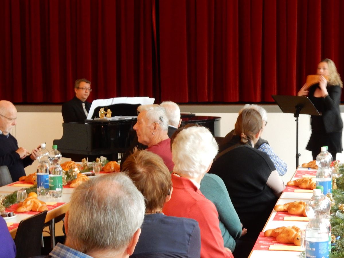 Nun wurde der musikalische Bogen in die Adventszeit geschlagen. Bekannte Liedmelodien wie „Fang das Licht“ von Karel Gott oder z.B. „Leise rieselt der Schnee“ wurden mitgesungen oder mitgesummt. Der lange Applaus nach der musikalischen Darbietung liess das „phantastische“ Ehepaar noch zu einer Zugabe erweichen. Und auf dem Heimweg hat die eine oder andere Melodie in vielen sicher noch nachgeklungen.
