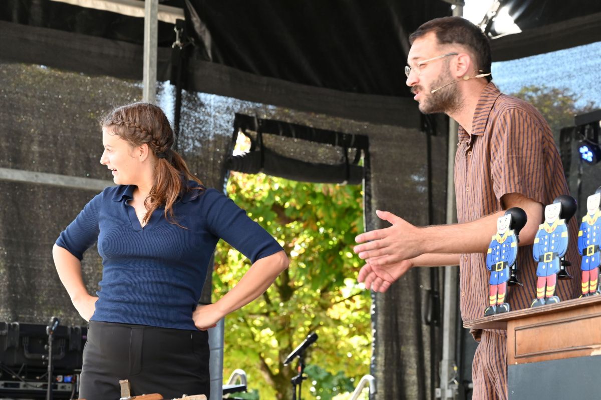 Nik Hartmann moderierte den Festtag gekonnt und mit viel Lebensfreude. Eindrückliche Gratulationsworte von den Festredenden, welche die wichtige Bedeutung des Vereins hervorhoben, liessen mit der Umrahmung von der Saxophongruppe Saxemble eine würdige Feststimmung aufkommen. Die Auftretenden, Heiri Müller mit seinen vielen selbst-komponierten Songs, zauberhafte Momente mit Severin Hofer «Herr Hofer mit dem Koffer» begleitet von der Hornspielerin Julia Leskinen und schliesslich die Schwiizergoofe mit ihrem Mitmach-Workshop fesselten Jung und Alt.